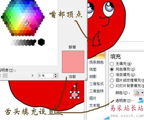 5、繪圖工具——形狀填充——紅色,將面部填充上紅色。