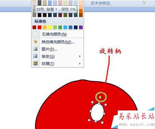 6、形狀中選橢圓,在面部畫出白色的眼睛。拉動調整框上的旋轉柄使其到合適位置。