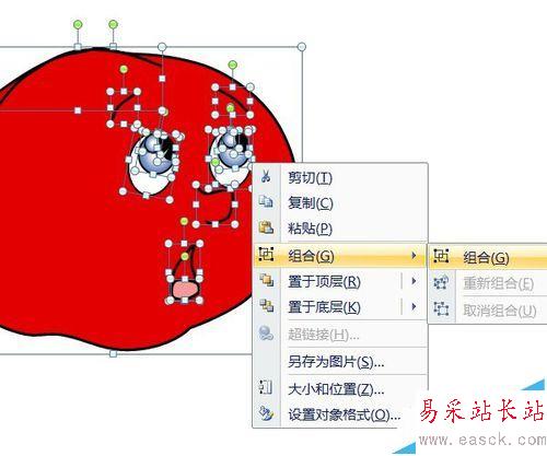 12、拖動拉出選擇框選中全部,右鍵組合。這一步防止無意的拖動會改變五官位置。組合欄里可取消組合。