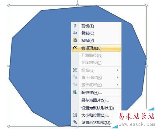 3、右鍵——編輯頂點。每一個頂點單擊后會出現兩個曲柄,拉動任一個,即會改變其所在邊的形狀。鼠標在線條上點擊會增加一個頂點。