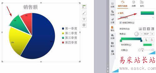 9、選中餅圖中的具體某一色塊,可以單獨(dú)設(shè)置顏色。