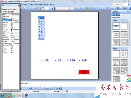 5、將A.正數(shù)復(fù)制三個(gè),并修改成不同的選項(xiàng)文字,并設(shè)置其相應(yīng)的屬性。
