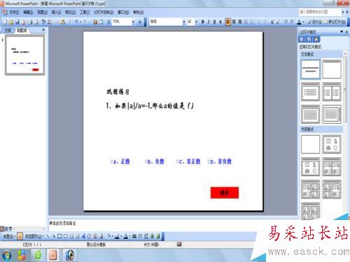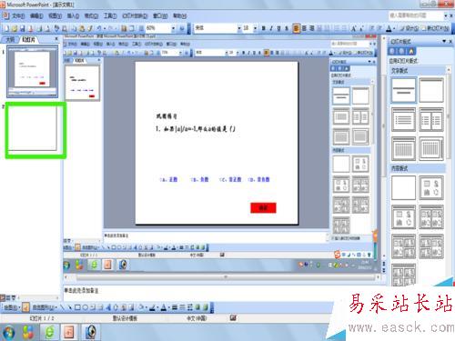 在教學(xué)過(guò)程中,在展示完自己的教學(xué)內(nèi)容后,后面往往會(huì)在附加幾個(gè)選擇題,以便鞏固課堂教學(xué)內(nèi)容,那么利用ppt如何制作人機(jī)交互的選擇題呢?請(qǐng)看下面的內(nèi)容。