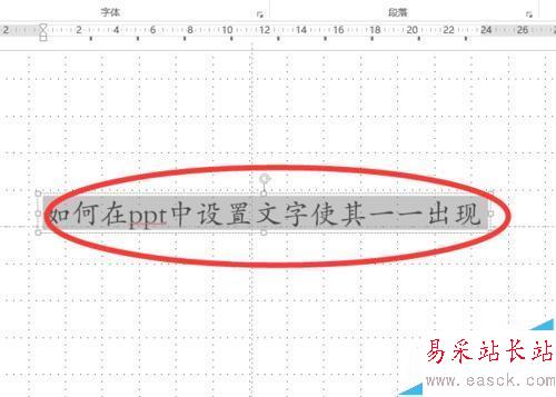 1、首先要在powerpoint中打開一個ppt。選中這個ppt中想要呈現這種動畫效果的文字,如圖所示。