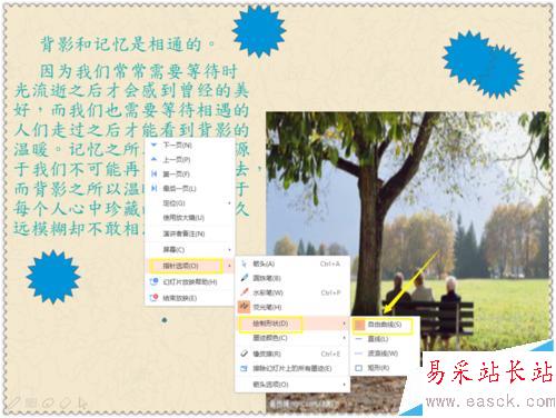 6、先右擊鼠標,選中“指針選項”,再點擊“繪制形狀”,再選中自己要的效果。