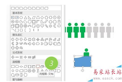 1、首先我們單獨(dú)復(fù)制出來一個(gè)小人。然后插入一個(gè)“流程圖:文檔”圖形(下圖3處),然后讓該圖形與小人相交,相交的位置由大家自行決定,比如牛閃閃這個(gè)例子是在大約2/5人形處。