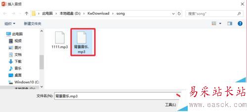 3、然后我們選擇電腦上需要插入的背景音樂,點擊選擇插入進來。