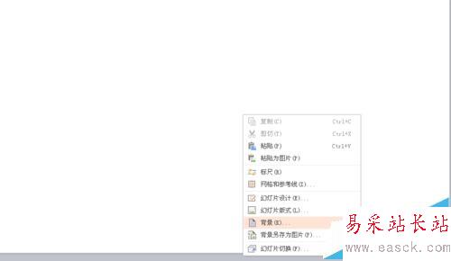 1、打開空白ppt,設置背景,右鍵點擊,選擇背景。在填充按鈕處,點擊圖案填充10%。然后將前景顏色選為黃色,背景顏色選為紅色,即形成賀卡背景。
