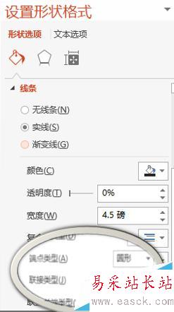 3、選中所有的圖形,設置形狀格式中,將端點類型及聯接類型設置為圓形。
