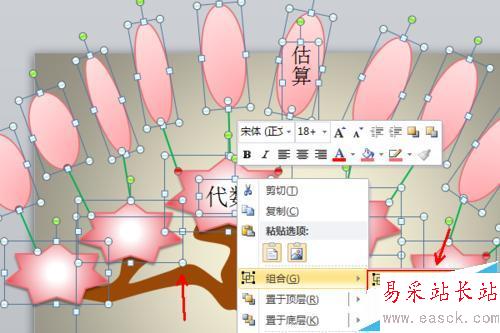 8、按Ctrl+A全選所有的圖形,按Ctrl+G,或者是右擊選擇組合,將組合后的圖形再次適當的調整寬度和長度