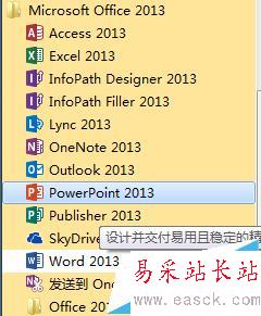 1、點擊“開始”→“程序”,點擊powerpoint2013