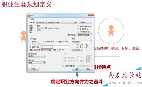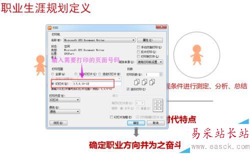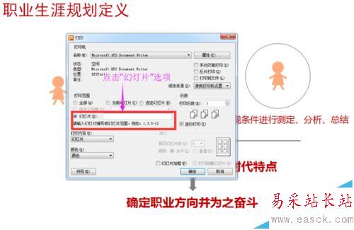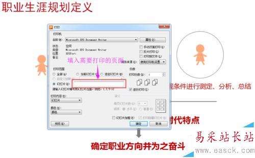 6、選中“幻燈片”選項后,后面的框中就可以填入數(shù)字了,在框中填入你需要打印的頁面。