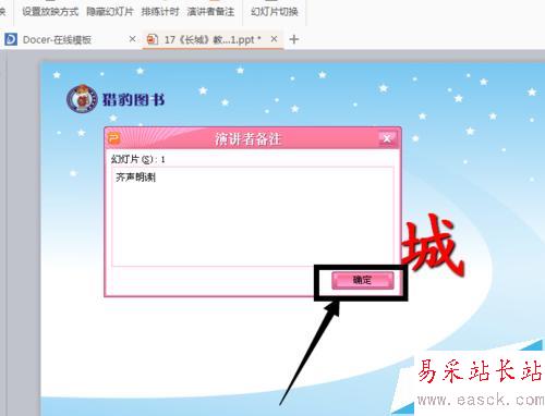 4、單擊之后就會出現需要插入的備注,當然你可以選擇插入的幻燈片頁數
