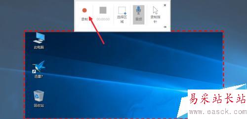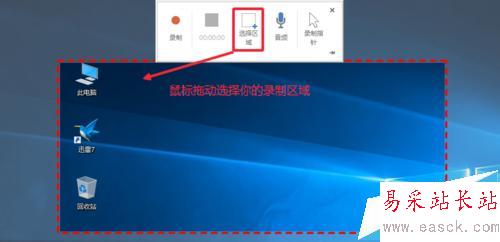 3、這時候會出現一個小窗口,點擊選擇區域,然后鼠標拖動選擇錄制區域,最好錄制前的準備工作??梢杂檬髽诉x擇自己想要錄制的視頻區域。