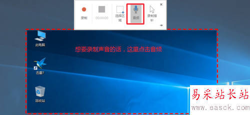 4、如果你想要在錄制視頻的時候,同時錄制你的聲音,可以點擊音頻,這里音頻顯示灰色狀態說明是選中的狀態,現在用麥克風連接電腦,開始錄制。