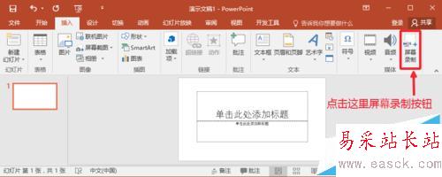 2、插入菜單中單擊這里的屏幕錄制按鈕,開始進行屏幕錄制操作。