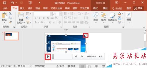 7、視頻錄制結束以后,我們可以在PPT中對視頻進行觀看,調整視頻大小等操作。