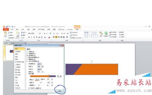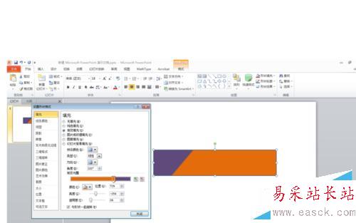 做PPT時,有時為了特殊的效果要使一個圖形同時具有兩種不同的顏色