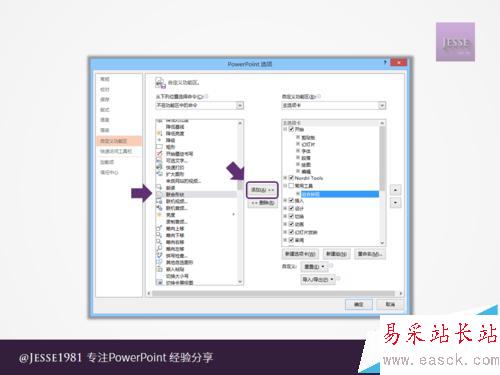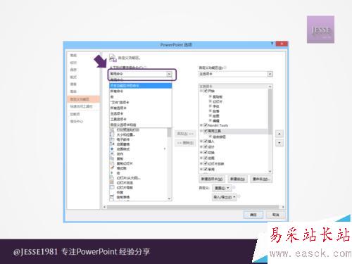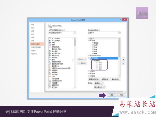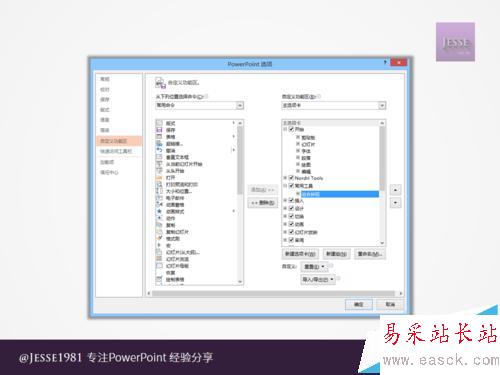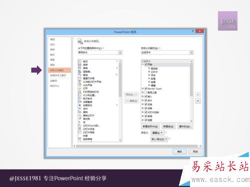 3、在彈出的“PowerPoint選項”窗口中,點擊左側“自定義功能區(qū)”按鈕