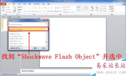 11、在控件列表里找到“Shockwave Flash Object”并選中。