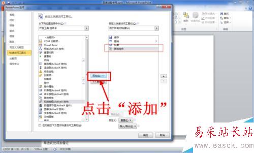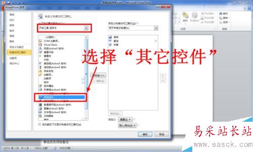 7、選中其他控件后點擊添加按鈕,此次右側的列表里就新增了“其他控件”命令。