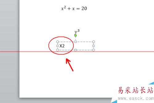 5、不過我們不止輸入x^2這一種,還有其他的變量,那么就選擇使用上標和下標的第一種形式,然后使用方向移動到相應的位置,輸入變量和次數(shù)就可以了,比如這里的y^2