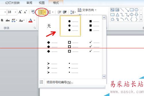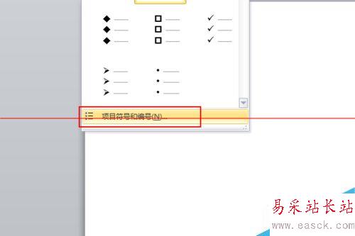4、還是選中這兩個字,然后回到開始——段落里面的項目符號列表,點擊最下方的“項目符號和編號”