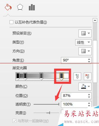 6、這一步我們對用以顯示數據大小的系列1進行美化。右鍵設置系列格式,在填充命令下,選擇漸變填充。線性90度向下,4個光圈,顏色都是黑色。第一個光圈透明度26%,第二個光圈46%,這兩個光圈位置距離較近,因為投影的正下方是最黑暗的部分。第三個光圈透明度53%,位置可以根據自己的喜好調節,最后一個光圈透明度100%,并適當調整位置。