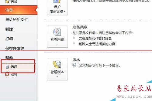 3、打開PowerPoint,在菜單欄里面點(diǎn)擊“文件”——“選項(xiàng)”如圖中所示紅框