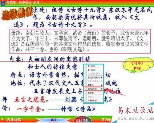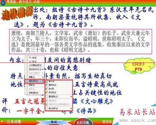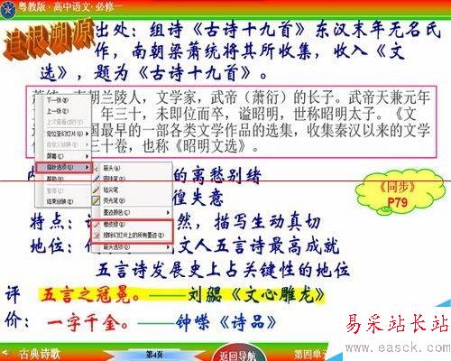 6、如果想把畫出的標注墨跡去掉或修改,可以鼠標右單擊,在出現的對話框中點”指針選項“,你會發現這時右下拉框中多出”橡皮擦“和”擦除幻燈片中所有墨跡“選項,請點擊”橡皮擦進行修改標注,也可以選擇”擦除幻燈片中所有墨跡“選項,去掉所有墨跡。