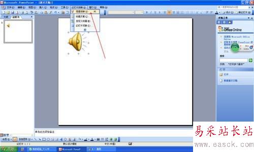 5、選擇如何播放聲音,根據(jù)自己的要求進(jìn)行選擇,可以自動(dòng)播放,也可以選擇單擊時(shí)播放,單擊小喇叭就可以了。