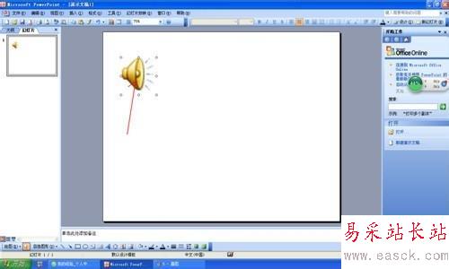 6、進(jìn)行檢測(cè)一下,播放幻燈片,單擊小喇叭,就可以聽(tīng)到聲音了。
