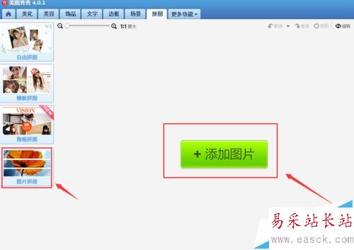 2、然后運行美圖秀秀,進入后,點擊“拼圖”