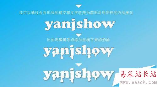 6、還可以通過合并形狀的相交將文字改變為圖形后用同樣的方法美化,比如用編輯頂點添加些滴下來的奶油