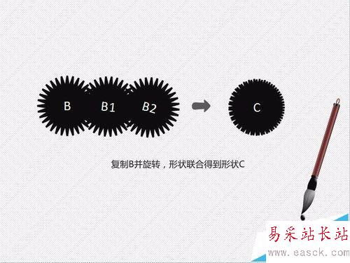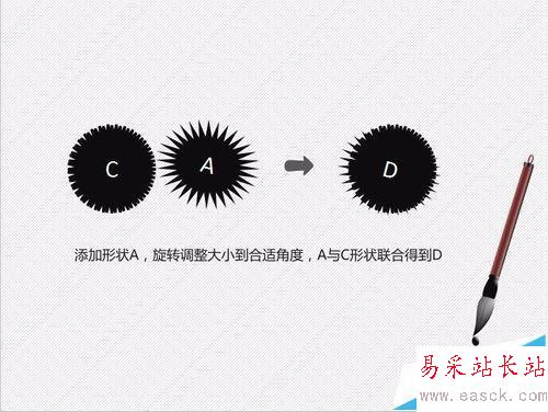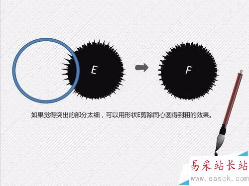 5、如果覺得突出的部分太細,可以用形狀E剪除同心圓得到粗的效果。