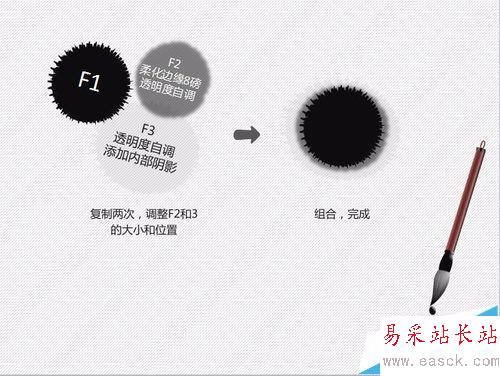 6、復制兩次,調整F2柔化邊緣透明度自調 和3透明度自調添加內部陰影的大小和位置 組合,完成