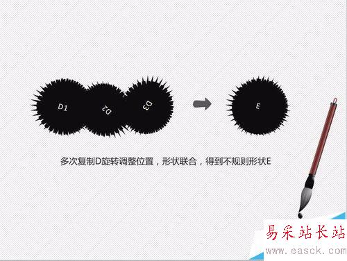 4、多次復制D旋轉調整位置,形狀聯合,得到不規則形狀E