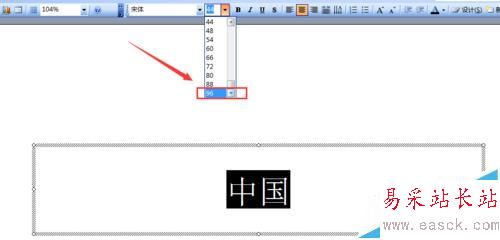 3、選擇我們的文字,在上面的設置區(qū)里設置文字的大小為,如圖所示: