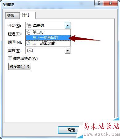 8、除了設置旋轉的方向,為了讓兩個齒輪運動更加逼真,達到“以假亂真”的地步,需要讓它們同時運行。這樣齒輪B需要在“計時”頁面中設置“與上一動畫同時”的設置。最后,別忘了設置和齒輪A同樣的重復次數。