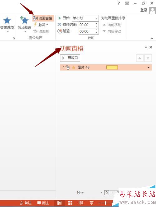 3、如果你的頁面中沒有彈出動畫窗格,可以點擊“高級動畫”--“動畫窗格”。這樣我們就在動畫窗格中看到剛剛的動畫命令了。