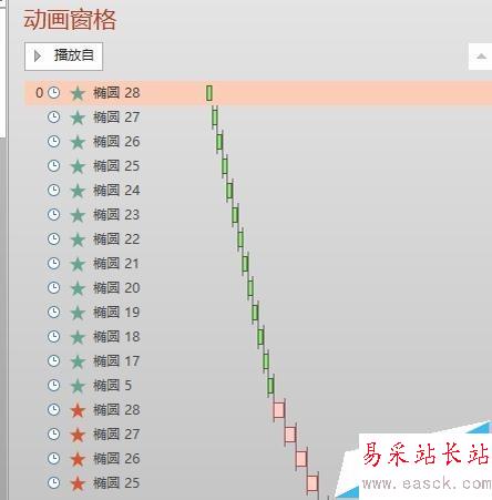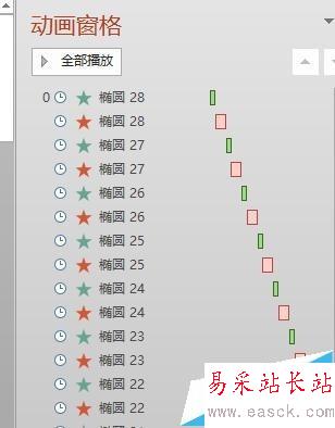 8、調整順序,2013的沒有一次性多選的,只能一個一個調整,只有調整效果時,才能多選,而調整位次不行。調整完變成這樣,動畫效果就是圓形先一個個飛入,然后一個個飛出