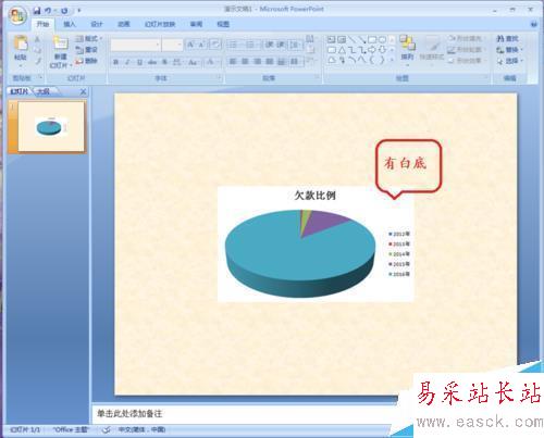 2、插入圖片后,我們看到插入的圖片有白底,和母版有明顯的色差,PPT顯得不美觀。