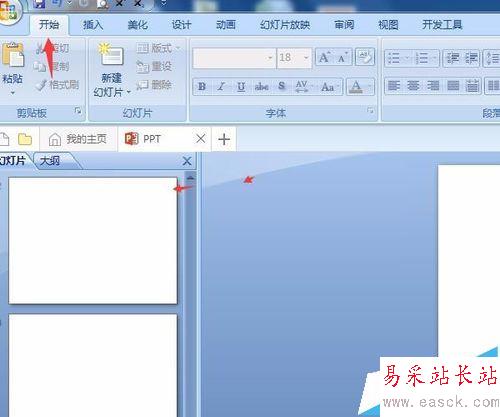 1、新建新的PPT。在一個新的PPT里進行繪畫,新建一個PPT后,打開,然后新建一個空白幻燈片,如圖所示。
