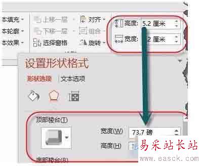 5、將“頂部棱臺(tái)”高度設(shè)置為跟原來(lái)一樣大小,寬度縮小一半,可直接用剛剛復(fù)制的數(shù)據(jù)