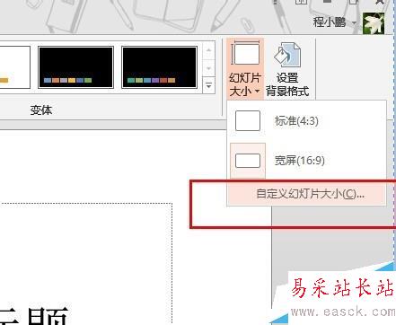 3、然后我們在這一步中,選擇”自定義幻燈片大小“。