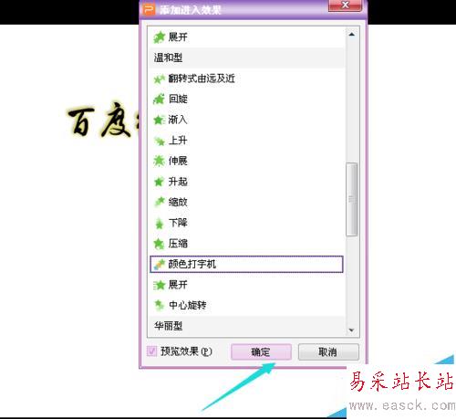 4、然后在右側菜單欄中點擊“添加效果-進入-其他效果”,然后找到顏色打印機,點擊確定。