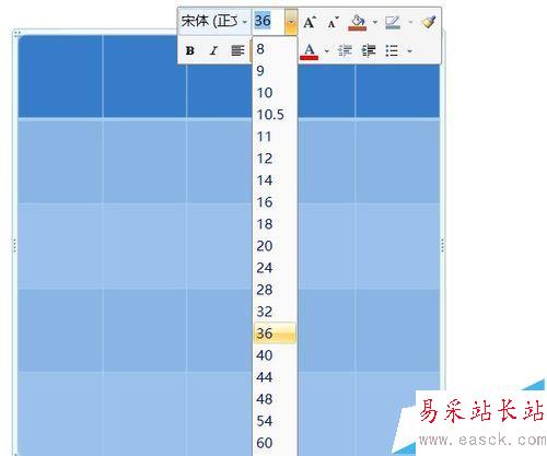 3、選中整個(gè)表格,右鍵,在彈出的字體工具欄中設(shè)置好合適的字號(hào)等。