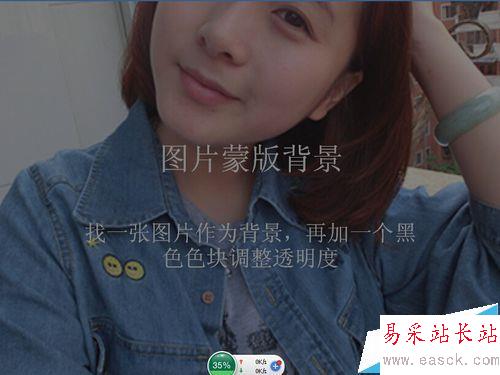 找一張圖片作為背景,再加一個黑色色塊調整透明度,當然也可以只遮蓋一部分。圖片加蒙版的方法很多,橫的豎的都可以去進行嘗試。