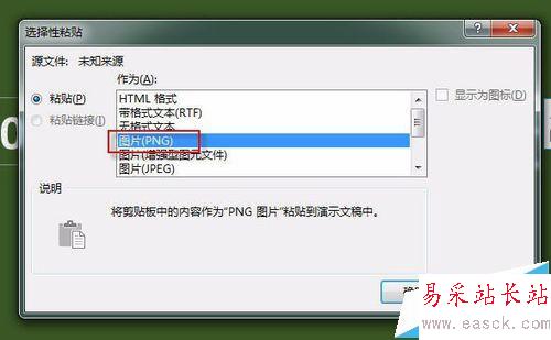 4、將文本變成圖片格式。步驟:復制剛剛的特效文本,選擇粘貼為PNG圖片,或者直接使用快捷鍵(ctrl+alt+v),然后將原文本刪除,如下圖:
