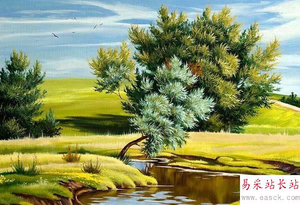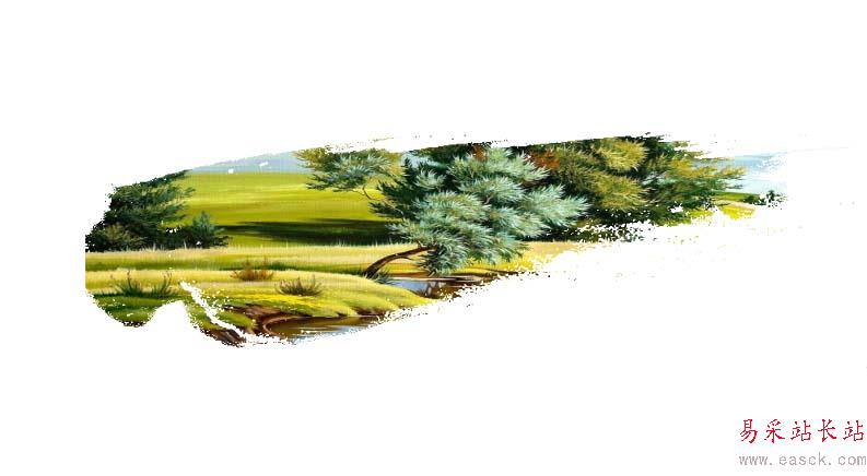 1、準備好一張筆刷的墨跡圖,可以到網站上去搜索。以及要展示的圖片,我姨一張風景圖為例。
